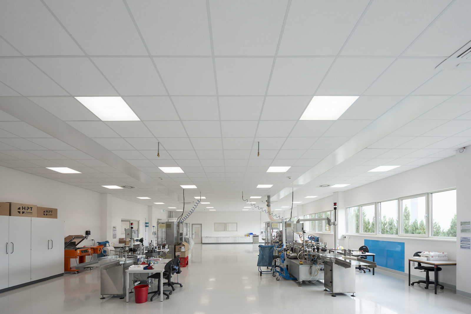 The acoustic ceiling in the extension of a production facility for laboratory diagnostics had to satisfy very differentiated requirements: Humancare Sinfonia contributes to cleanliness and hygiene thanks to its special finish. Moreover, its individually removable tiles facilitate flexible alterations in the production facility whenever required. Discover further exciting perspectives of this reference Project in the following film.