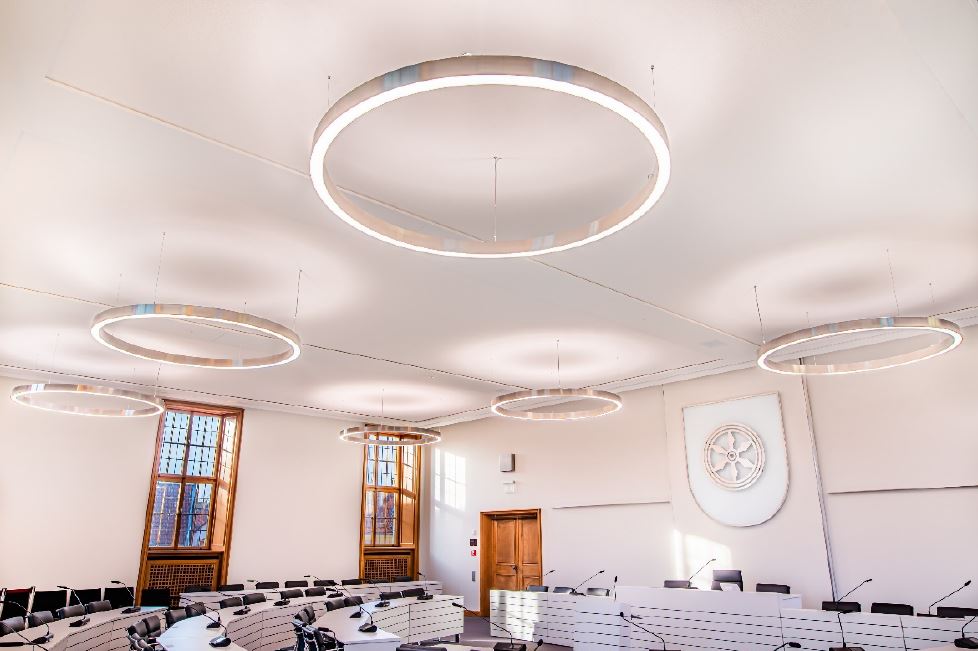Das historische Rathaus der Stadt Osnabrück mit seinem Ratssitzungssaal, dessen Geschichte bis in das 16. Jahrhundert zurück reicht, trifft nach einer umfangreichen Sanierung auf modernste Technologien und edles Design. Bereits im Februar 2020 beschloss der Stadtrat das historische Rathaus an modernste technische und funktionelle Gegebenheiten anzupassen.