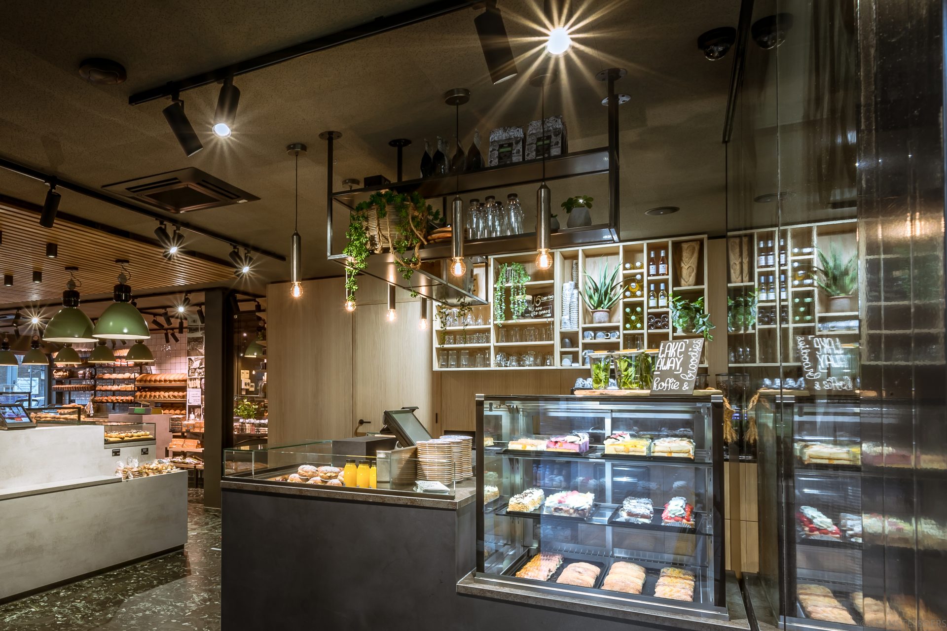 Innenausbaubüros Revitoo ein weiteres, komplettes Redesign. Ergebnis des Umbaus ist eine zeitgemäße und ästhetisch überzeugende Kombination von Industrie-Look mit der Intimität und Behaglichkeit einer Backstube, verbunden mit der Akzentuierung jener sinnlichen Eindrücke, die den Besuch einer Bäckerei ausmachen.