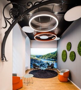 Mit der schwarzen Rasterdecke in Kombination mit den runden, weißen Deckensegeln in verschiedenen Größen und den dazu passenden Leuchten entwickelten 3X Banktechnik ein Gestaltungskonzept, mit dem sie variabel auf die sehr heterogenen Gegebenheiten des Bestands reagieren konnten. Es gelang ihnen, eine architektonische Sprache zu finden, die die unterschiedlichen Gebäudeteile vereint. Und auch 3X Banktechnik zeigt sich überaus zufrieden mit dem Resultat: „Nach der Fertigstellung zeichnet sich das Projekt durch sein klares Konzept, seine hohe Nutzerakzeptanz und eine Detaillierungstiefe aus, welche gerne auch erst auf den zweiten Blick erkannt wird.“