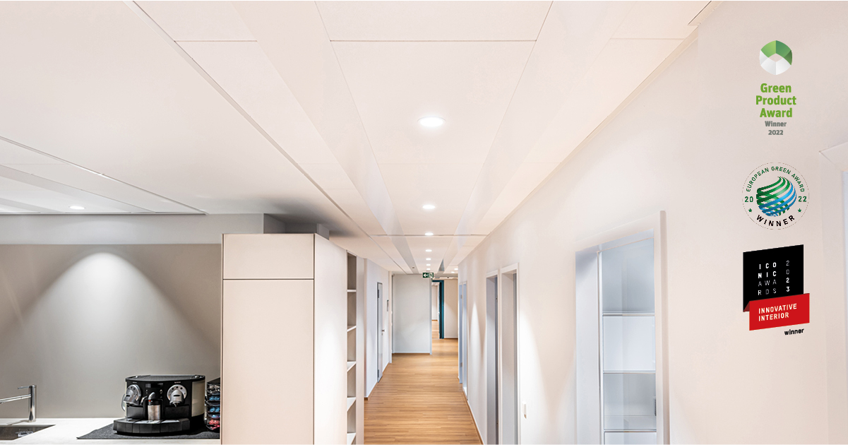 Die OWActive Mineralklimadecke gewinnt den ICONIC AWARD: Innovative Interior 2023 in der Kategorie Wand, Boden, Decke