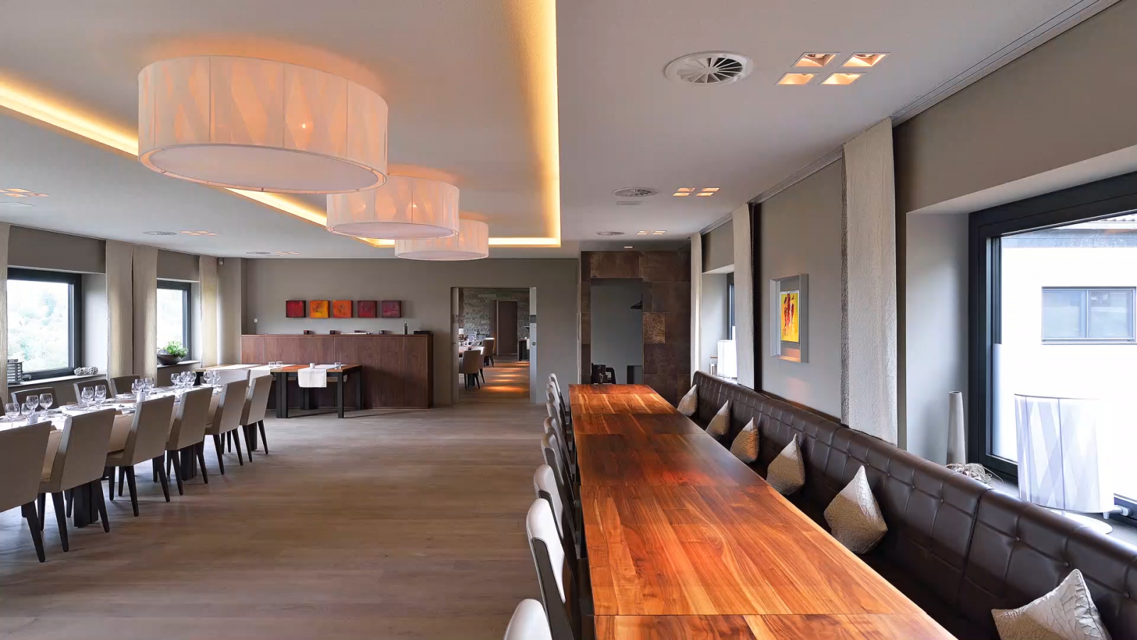 With fresh and healthy snacks, Restaurant & Bistro Pfaffenberg attracts its guests to Solingen in stylish atmosphere. The simple and elegant ceiling design in combination with high-quality designer furniture completes the high-quality room concept. The jointless, monolithic appearance and fine structure of the plaster provides the restaurant with noticeable elegance and equally excellent acoustic performance. Discover further exciting perspectives of this reference project in the following film clip.