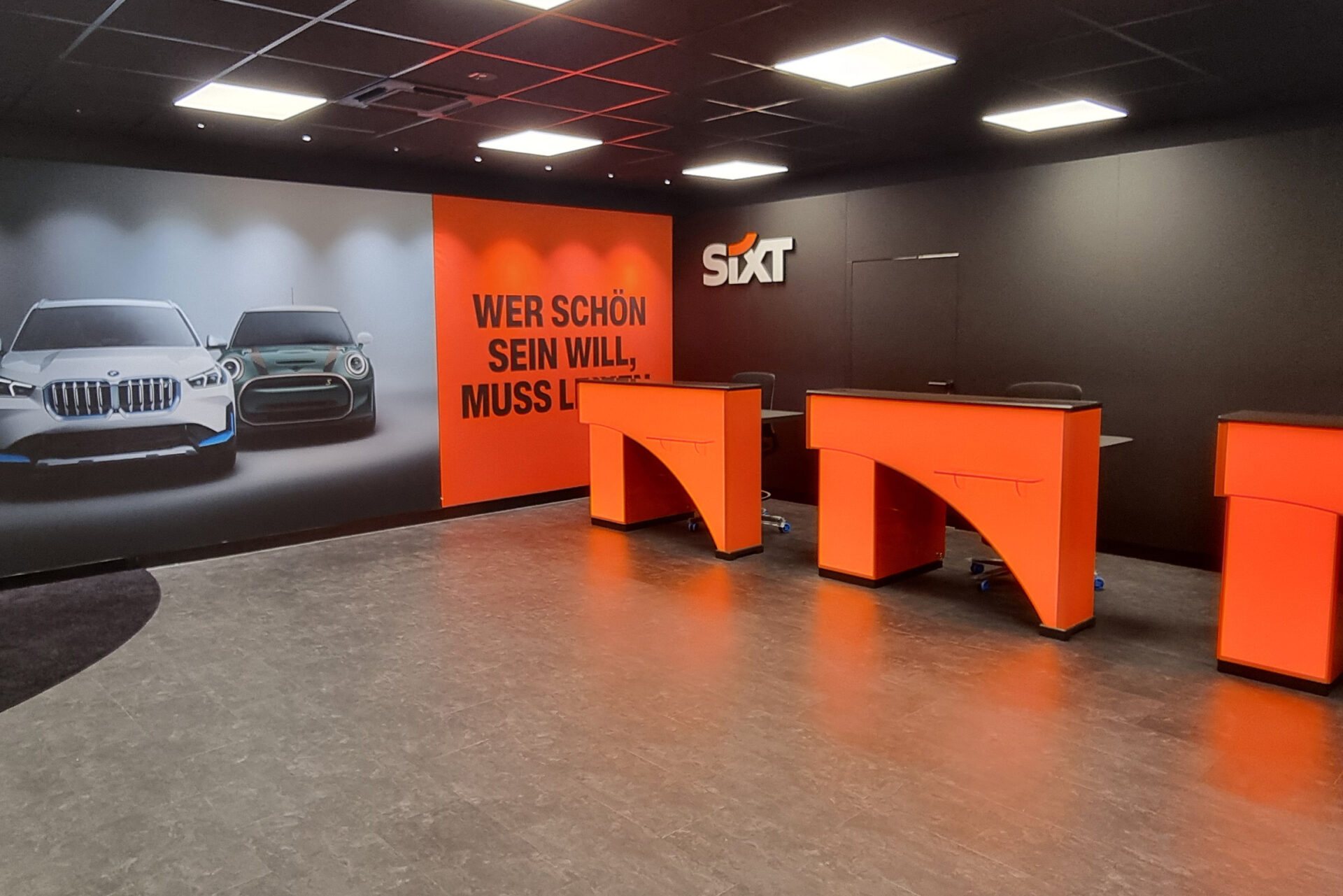 Dank der tiefschwarzen Oberfläche fügt sich Sinfonia schwarz perfekt in den unverwechselbaren Markenauftritt dieser Sixt Station ein.