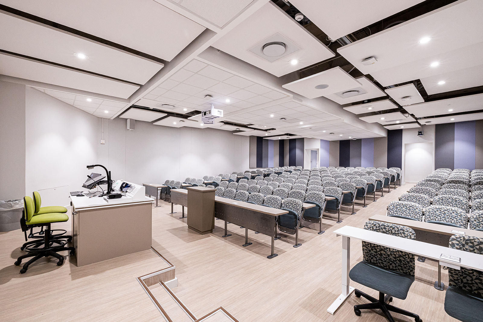 Finettas farbbeschichtete Oberfläche mit einer feinen bis mittelgroben Perforierung und homogenen Optik bietet eine gute Schallabsorptionsleistung und einen in einigen Varianten sehr hohen Feuerwiderstand. In Kombination mit den exklusiven Glaswolle-Deckensegeln Selecta grande verfügt das Universitätsgebäude der University of Stellenbosch über Schallabsorptionswerte von αw = 1,00. Die Glaswolle-Absorber lassen sich frei zu ausdrucksstarken Geometrien kombinieren und eröffnen zahllose Optionen für kreative Akustiklösungen unter praktisch jeder Konstruktion. Entdecken Sie weitere spannende Perspektiven dieses Referenzprojektes im nachfolgenden Filmbeitrag.