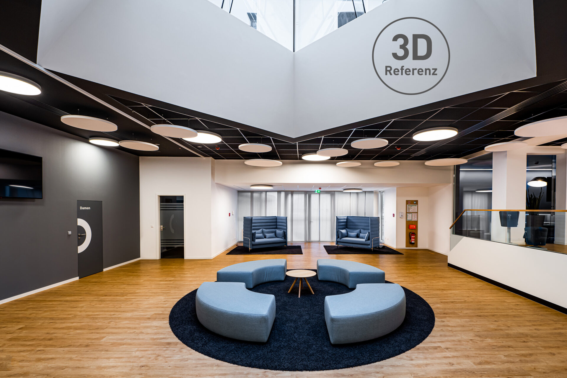 Die verbauten OWA-Systeme verhelfen der Volksbank nicht nur optisch zu einem einzigartigen Look, sondern auch zu einer angenehmen Raumakustik, die besonders für diskrete Bankgespräche erforderlich ist. Die vlieskaschierten Sinfonia-Decken erreichen einen exzellenten Schallabsorptionswert von 0,85. Mit den zusätzlichen Selecta-Deckensegeln aus der OWAconsult collection lassen sich die Räume je nach Anforderung noch zusätzlich und punktgenau bis auf die gewünschte „Hörsamkeit“ ausrüsten. Die runden Segel aus leichter Glaswolle zählen mit einem Schallabsorptionswert von 1,00 zu den A-Klasse-Absorbern von OWA und werden ganz einfach mit Seilen und Deckenbefestigern an den gewünschten Stellen abgehängt.