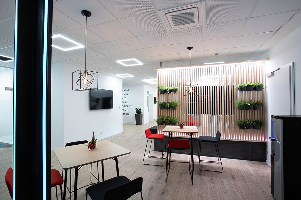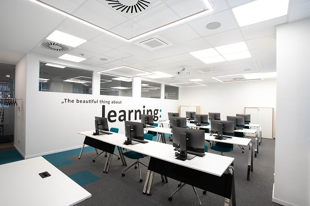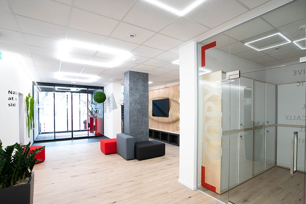 Seit 1908 ist das Gebäude des Unternehmens AHT Cooling Systems am Stammsitz im Österreichischen Rottenmann in Benutzung und wurde über die Jahrzehnte mehrfach umgebaut. Nun wurde der zweistöckige Bürokomplex komplett saniert und bietet den Mitarbeitern hochwertige und zeitgemäße Arbeitsplätze. Für die rund 1.000 Quadratmeter große Wohlfühl-Arbeitsumgebung kamen zahlreiche OWA-Lösungen, wie die vlieskaschierte Mineraldecke Sinfonia, zum Einsatz. Sie sorgen für ideale raumakustische Bedingungen, modernes Design und eine nicht alltägliche Lichtinszenierung.