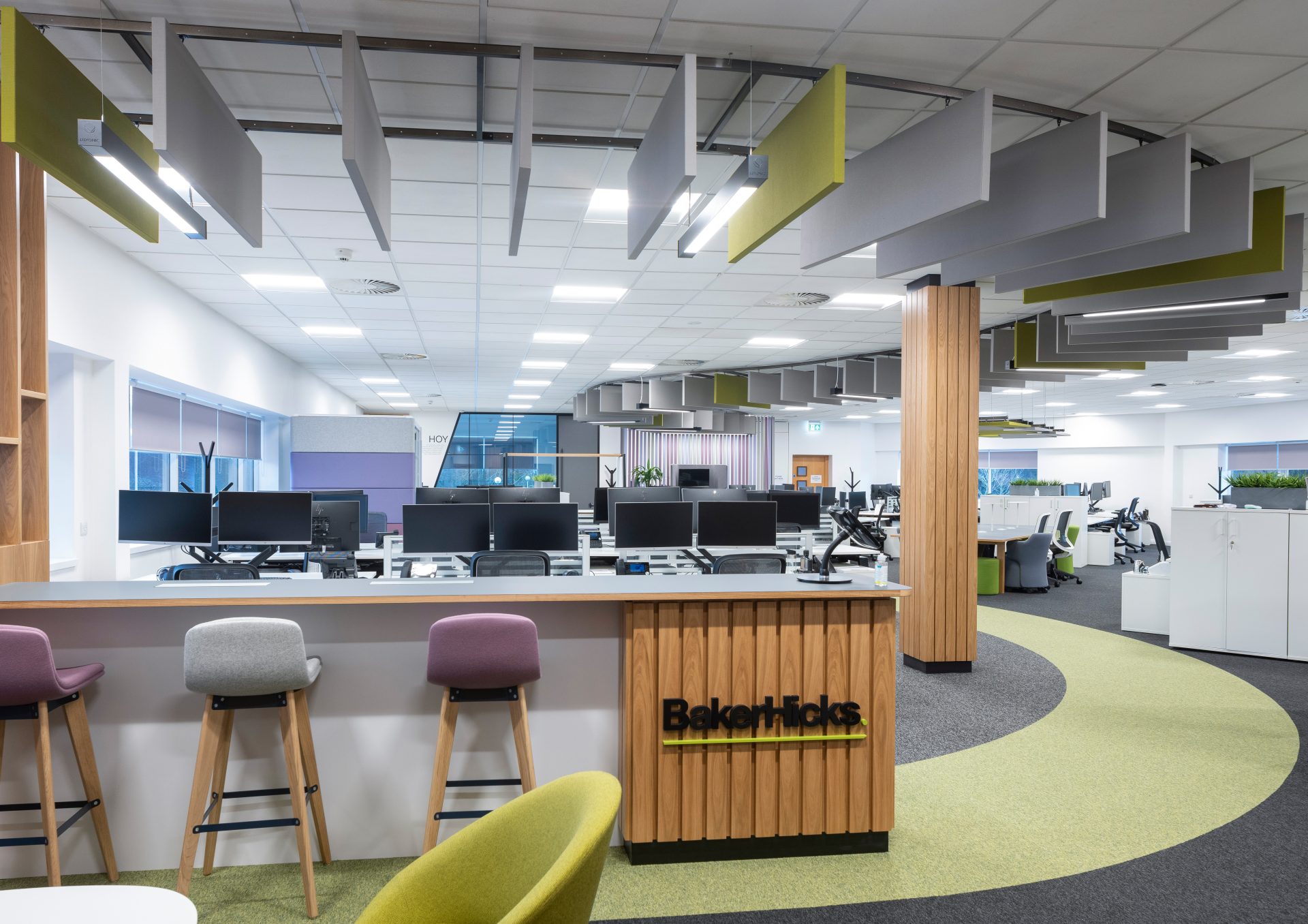 W biurze BakerHicks zastosowano system FreeStyle lamele w kolorze szarym i zielonym na szynie łukowej oraz absorbery ścienne FreeStyle trapeze. Możliwości kombinacji listew są niemal nieograniczone, zarówno w poziomie, jak i w pionie. FreeStyle lamele nadaje powierzchniom sufitów i całym pomieszczeniom imponujący charakter.