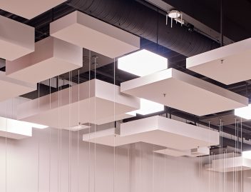 As for the acoustical properties? The glass-wool core and white, fleece laminated surface of each Corpus element catapults this system into the highest level of acoustical properties with a Class-A absorption level.