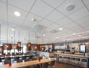Octave 80 High CAC is the universal ceiling tile within the premium Octave Line. Thanks to a unique combination of excellent sound absorption (0.80 NRC) and high sound reduction (up to 37 dB), Octave 80 ensures perfectly balanced acoustics both within and between rooms. Octave 80 is a perfect solution for areas that call for a high absorption level, but walls extend only to the suspended ceiling, leaving a shared plenum space between two adjoining areas.