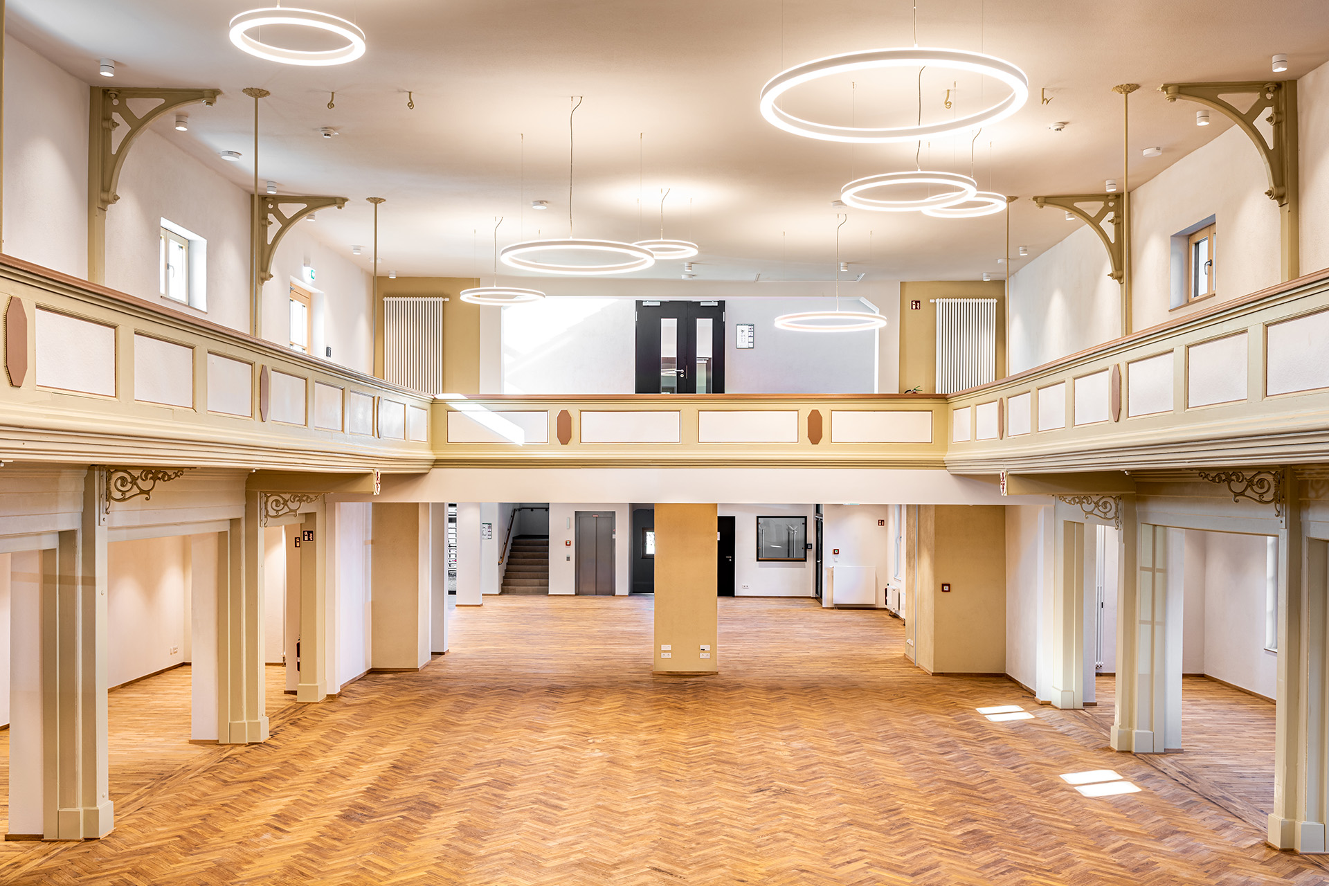 With the “Alte Turnhalle”, the town of Amorbach has been able to preserve and revitalize a building steeped in tradition from its recent history. In keeping with its new use as a lively event venue, highly functional acoustic ceilings from OWA are being used that are coordinated with the interior design. Inside the existing building, whose façade has remained clearly recognizable, there is a pleasantly homogeneous feeling of space. This is achieved through perfectly coordinated interior design elements, particularly in the form of the selected OWA ceiling systems. These include the seamless OWAplan 90 ceiling system in the S7 system with the highest possible class A absorption. In addition, the Tecta S33 metal ceiling was installed in the kitchen covering 76 square meters.